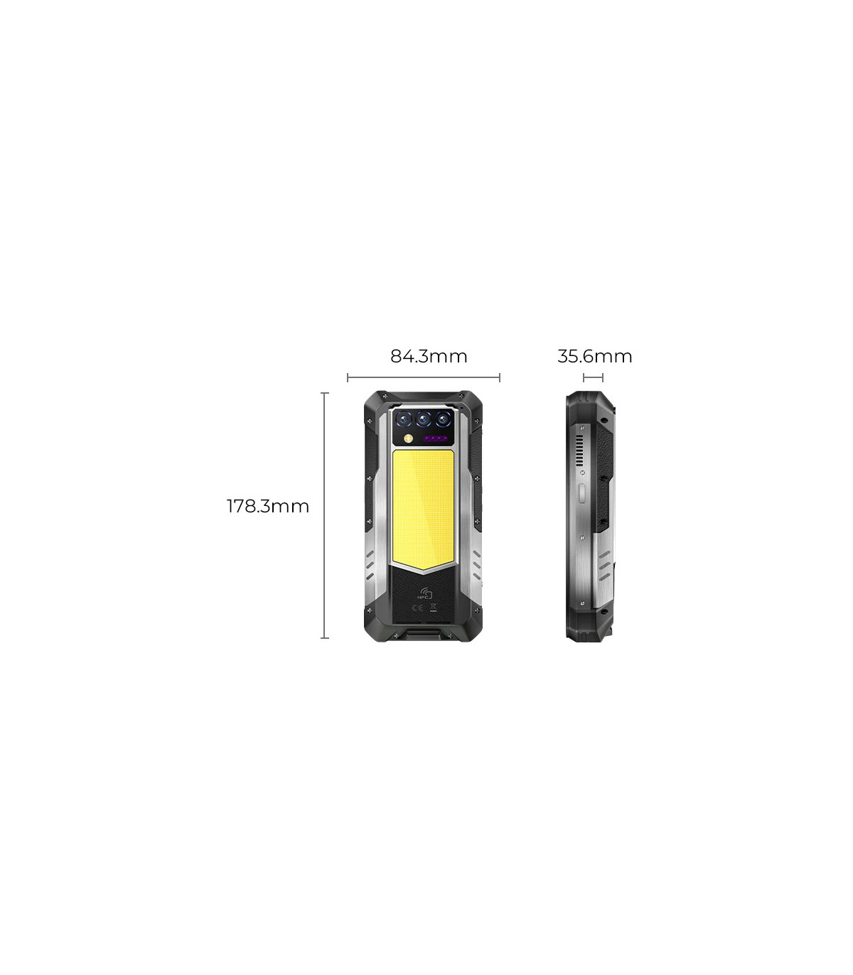 IP68 защита: Водоустойчив, прахоустойчив, удароустойчив корпус 6.78" 120Hz 1080*2460  пиксела екран MediaTek Dimensity 6300 (6nm) осем ядрен на 2.4 GHz Android 15 12GB+24GB RAM памет + 256GB вътрешна памет Задни...