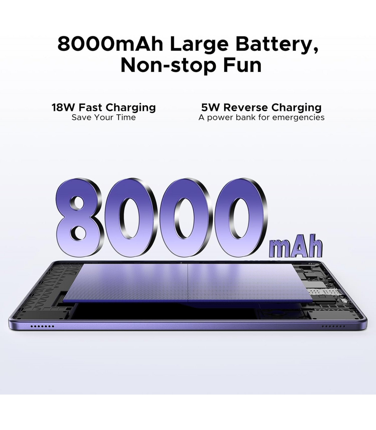 12 инчов 2000 x 1200 Pixels екран Unisoc T615 осем ядрен на 1.8 GHz Android 15 8GB+16GB RAM памет + 256GB вътрешна памет Задна камера 16MP / Предна 8MP Две SIM карти в режим на изчакване 9000 mAh БАТЕРИЯ 3G:WCDMA...