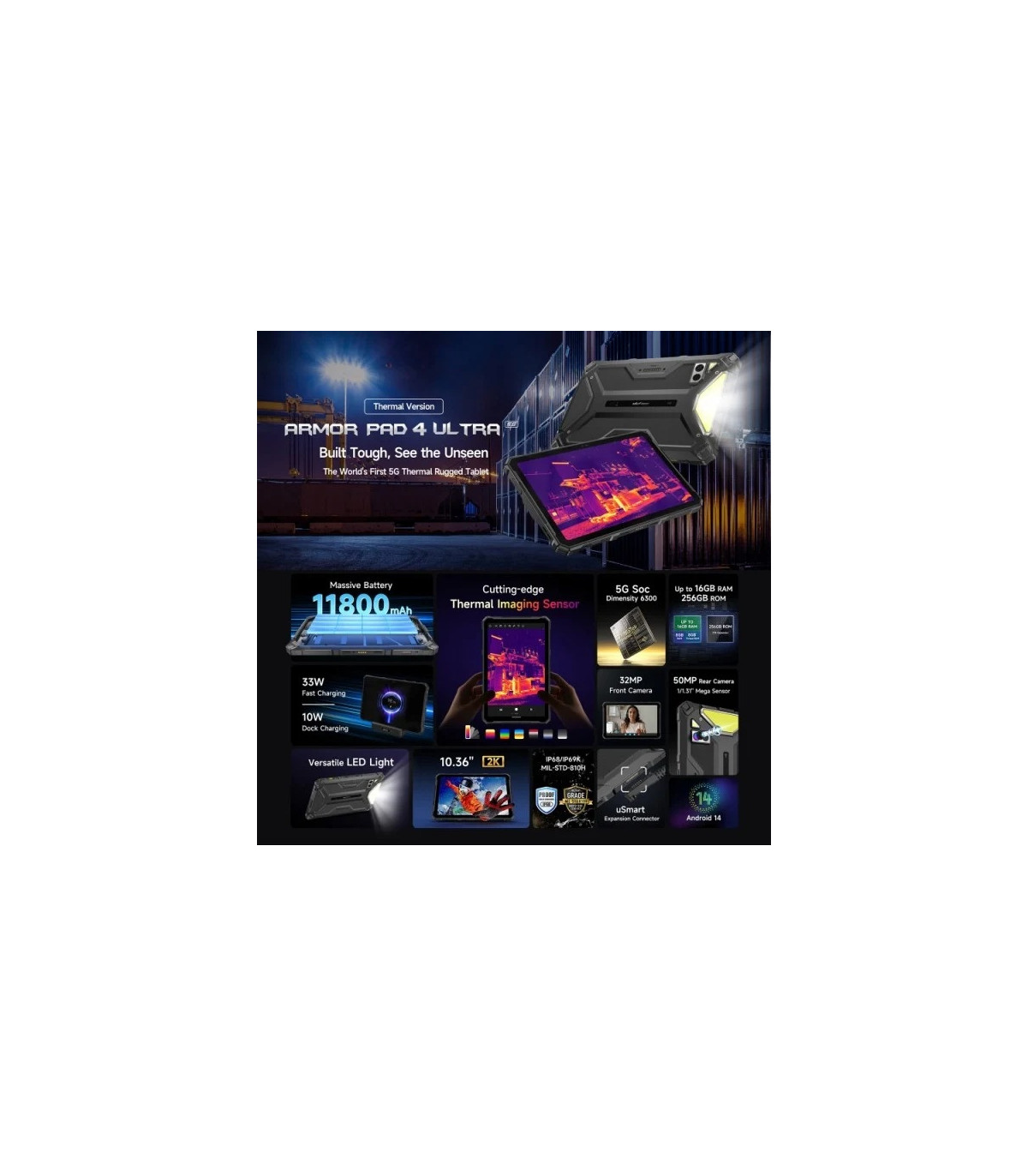 Ulefone ARMOR PAD 4 ULTRA Thermal 5G 16GB RAM 256GB ROM Таблет с IP68 защита